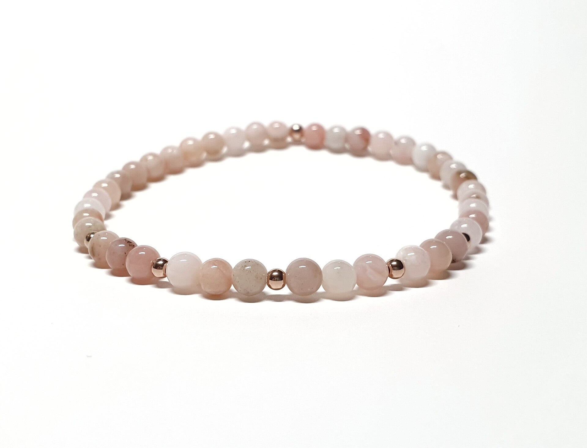 Roze opaal. Deze Roze (Andes) opaal met roze gold filled kraaltjes. Armbandje met 4mm roze Andes opaal met roze gold filled kraaltjes geregen op zeer stevig juweliers elastiek