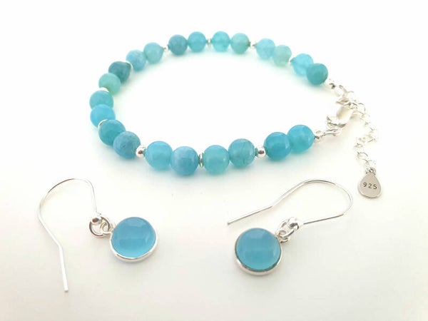 Armbandje met 6mm crabagaat (chalcedoon) kraaltjes geregen op zilverdraad met sterling zilveren lobsterslotje en verlengkettinkje