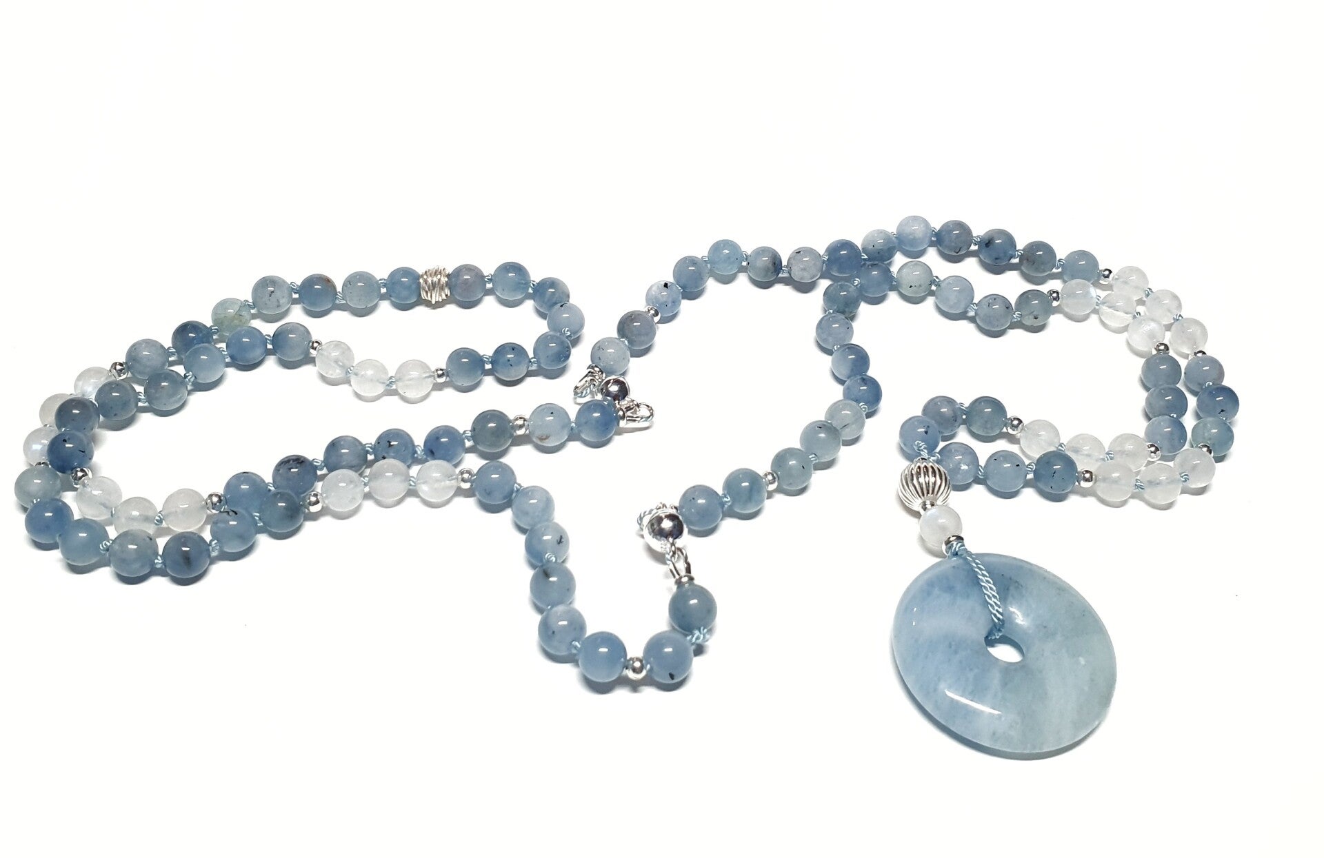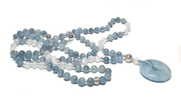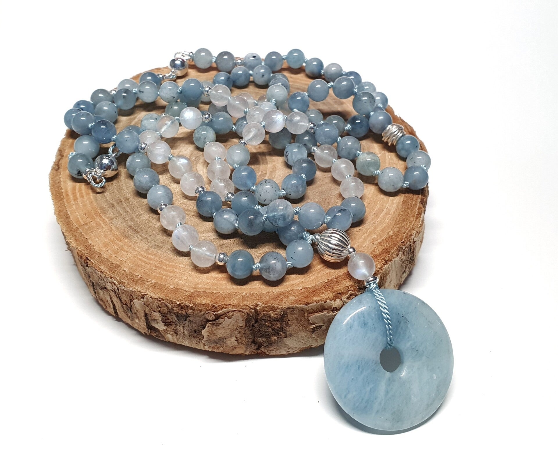 Mala aquamarijn, regenboogmaansteen