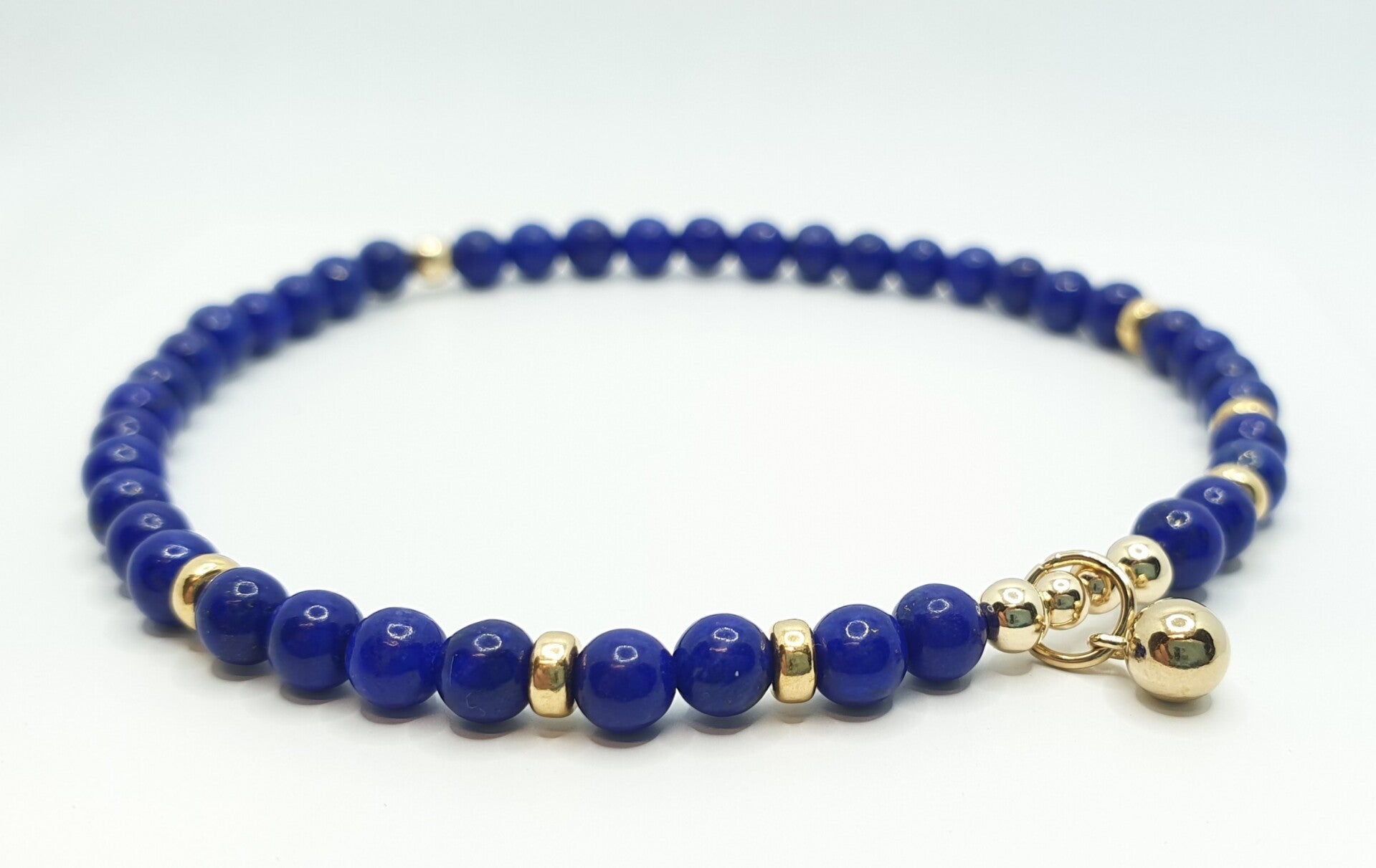 Lapis lazuli 100% natuurlijk A kwaliteit. Armbandje met 100% natuurlijke lapis lazuli, deze is dus niet bijgekleurd! de kleine 3 tot 4mm kraaltjes zijn gecombineerd met gold filled details en geregen op zeer stevig juweliers elastiek. Dit armbandje is ook met andere edelstenen verkrijgbaar.
